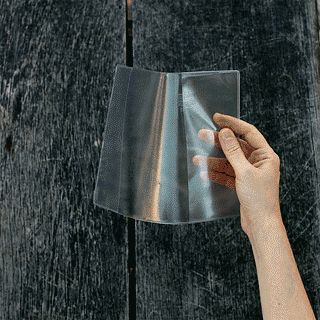Fabricada em PVC Cristal com abas interiores e impressão a seco.