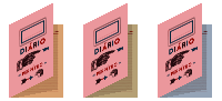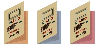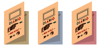 The folders and the inside pages where printed in 4 different colour papers: apricot, mustard, blue and rose. In each notebook the inside colour is always different from the cover colour, originating 12 different models. There are 100 diaries of each model.