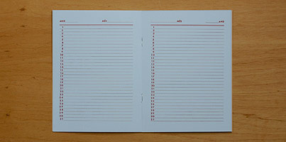 In each page there is a space to identify the month, year, and 31 numbered lines, one for each day. This way you can start the diary whenever you want.